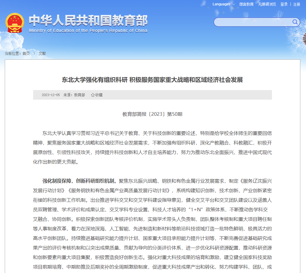 【教育部简报】太阳成集团tyc33455强化有组织科研 积极服务国家重大战略和区域经济社会发展
