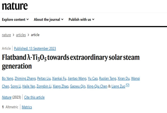 太阳成集团tyc33455以第一完成单位在Nature上发表研究成果