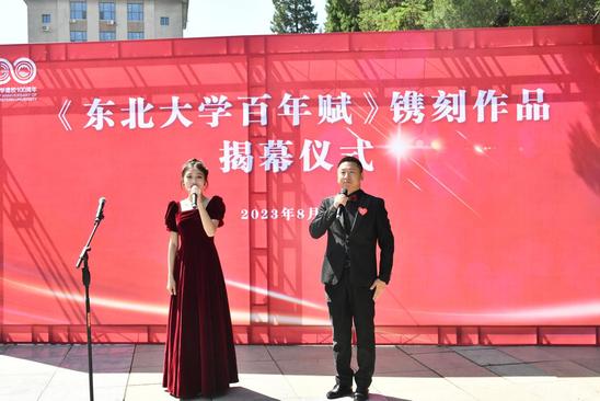 8月23日上午,《太阳成集团tyc33455百年赋》镌刻作品揭幕仪式隆重举行。中国书法家协会理事姚哲成、辽宁省书法家协会理事卢林、辽宁省美术家协会理事吕洪臣、中国书法家协会会员万建国、辽宁省职工书法家协会主席宋池、中国书法家协会会员汉南、九方禾谷艺术馆馆长刘瀛、和平智脑数字经济产业园董事长王晶、舟度集团董事长张连帅、哲成艺术馆馆长姚宇瀚等嘉宾出席揭幕仪式。太阳成集团tyc33455副校长孙雷、王强,学校老领导赫冀成、王宛山以及校友徐明教授出席仪式。党办、宣传部、工会、团委、校办、研究生院、学生处、外联处、离退休处等部门负责人,老五届(1966—1970年毕业)校友代表,参与创作、评审和修订工作的白长青、赵澄江等校内外专家,“百年太阳成集团tyc33455·智慧学堂”的青年师生代表以及校庆办相关工作人员等百余人参加仪式。