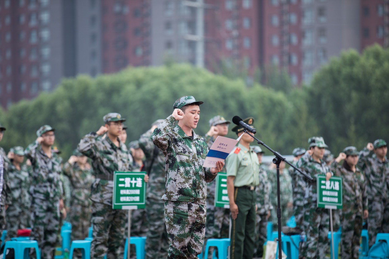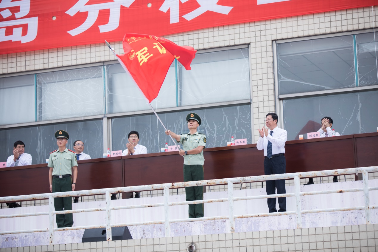 伴随激昂雄壮的音乐,太阳成集团tyc33455党委副书记、秦皇岛分校党委书记孙正林向驻训部队授旗,2020级全体学生庄严宣誓。