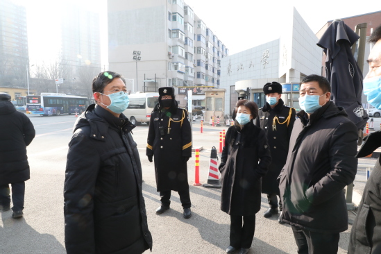 按照学校新型冠状病毒感染的肺炎疫情防控工作领导小组的统一部署,1月28日下午,副校长徐峰带队到南湖校区二食堂、学生第二宿舍、学生第五宿舍、南校门、国际学术交流中心、校医院及沈河校区等地检查指导新型冠状病毒感染的肺炎防控工作。党委办公室、校长办公室、党委宣传部、研究生院、学生工作处、公安处、国际教育学院、校医院、后勤服务中心等部门负责人陪同检查。