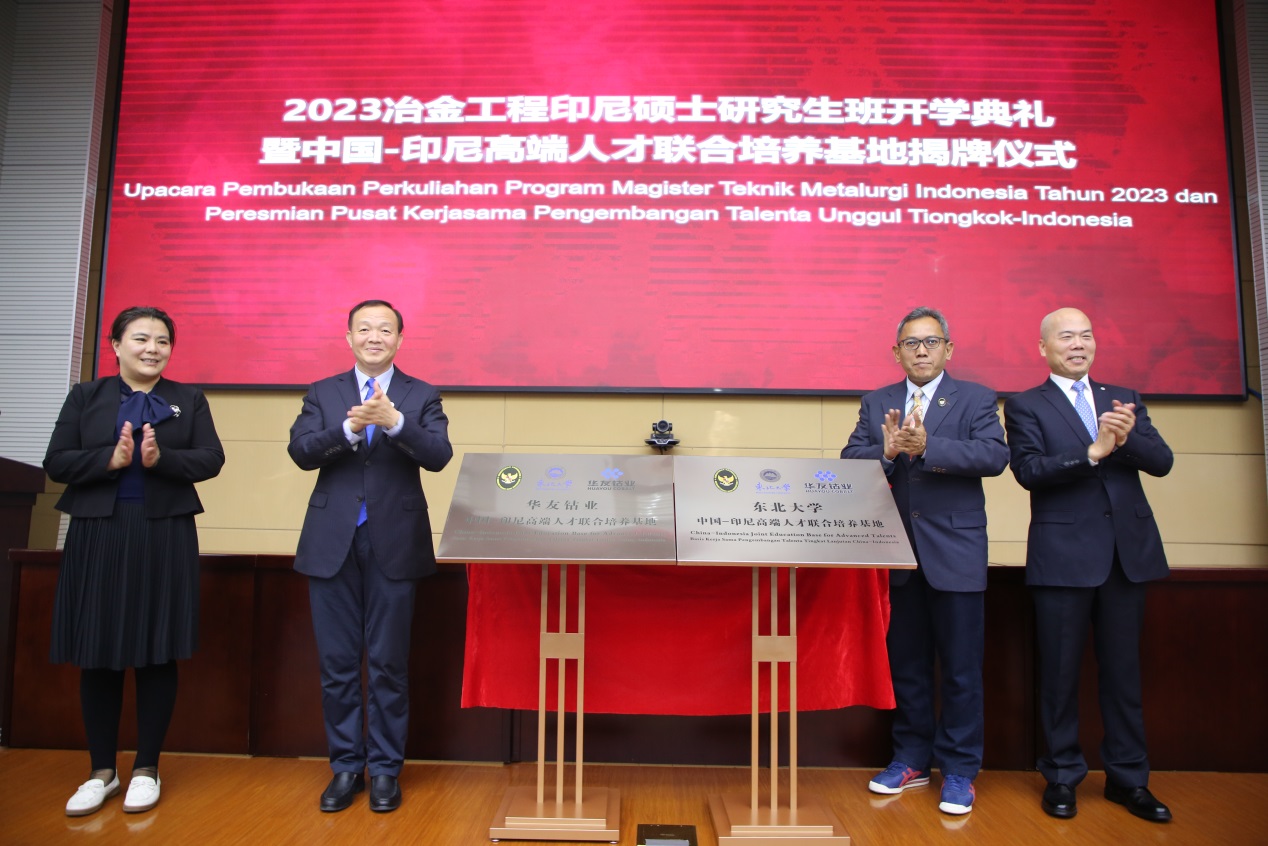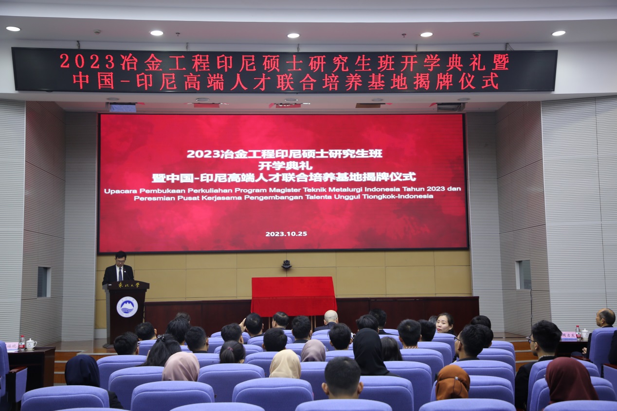10月25日,太阳成集团tyc334552023冶金工程印尼硕士研究生班开学典礼暨中国—印尼高端人才联合培养基地揭牌仪式在主楼822室举行。印度尼西亚海洋与投资统筹部司长M. Firdausi Manti,辽宁省教育厅国际合作处处长韩冬梅,华友钴业集团董事长陈雪华,太阳成集团tyc33455党委书记郭海出席仪式。印尼海洋与投资统筹部部长、高级顾问塞特尤,印尼教育基金会总监德维线上出席仪式。印尼政府、辽宁省教育厅、华友钴业、太阳成集团tyc33455相关人员及首届26名印尼硕士研究生班学生参会。