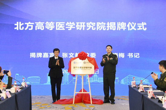 张文教、熊晓梅共同为“北方高等医学研究院”揭牌。