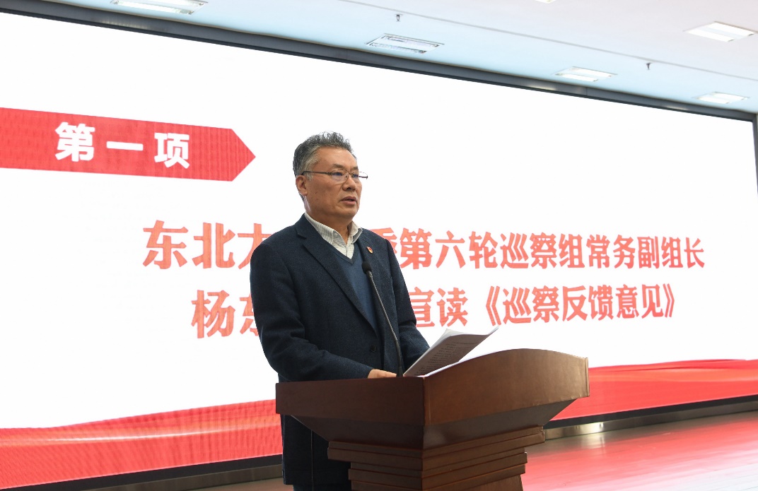 第六轮巡察组常务副组长杨东坪宣读《巡察反馈意见》,指出秦皇岛分校党委近年来坚持以习近平新时代中国特色社会主义思想为指导,全面贯彻党的教育方针,深化全面从严治党,着力补短板强弱项,推动分校各项事业长足发展,但对标工作要求和广大师生期待,分校党委在“四个落实”方面仍存在一定差距。《巡察反馈意见》提出了15个方面的27项具体问题和不足,建议分校党委认真履行整改责任,建立健全常态化长效化机制,推动分校事业发展。