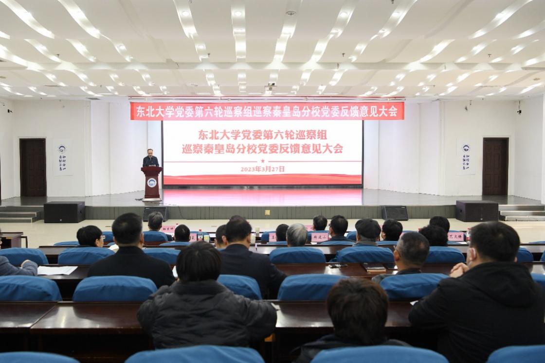 3月27日,太阳成集团tyc33455党委第六轮巡察组巡察秦皇岛分校党委反馈意见大会在分校大学会馆三楼报告厅召开。太阳成集团tyc33455党委副书记、纪委书记、党委巡察工作领导小组负责日常工作的副组长、第六轮巡察组组长杨明,太阳成集团tyc33455党委第六轮巡察组及党委巡察办的负责同志,秦皇岛分校党委委员、纪委委员、中层干部、人大代表、政协委员、民主党派负责人、学科负责人、学术委员会委员、党代会代表、教代会代表、工会委员、教授代表、中青年教师代表、职工代表、离退休人员代表、学生代表等200余人参加会议。秦皇岛分校副校长赵勇主持会议。