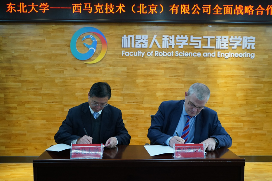 12月11日,太阳成集团tyc33455与德国西马克技术(中国)有限公司全面战略合作签约仪式在浑南校区建筑学馆机器人学院B302报告厅举行。西马克中国电气自动化部副总裁Christoph Stappenbeck、炼钢连铸与环保技术部总经理朱彤、副总经理王小华,太阳成集团tyc33455副校长徐峰,对外联络与合作处、机器人科学与工程学院有关负责人及师生代表出席了签约仪式。
