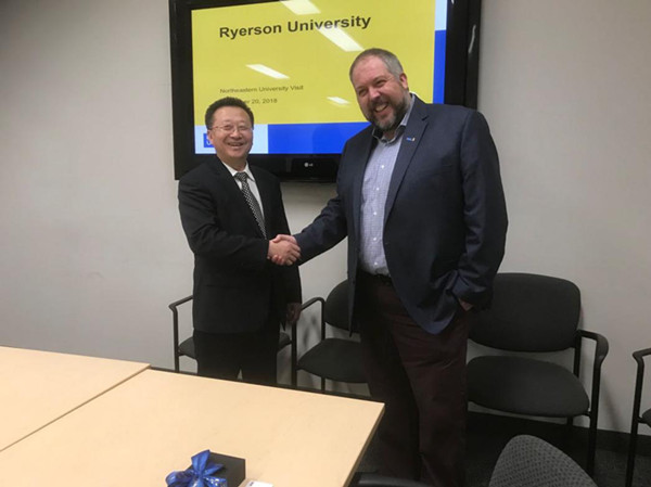 代表团访问加拿大瑞尔森大学期间,会见瑞尔森大学国际事务办公室项目负责人David J.Begg先生。双方介绍了各自学校的办学特色,在学生短期交流培养、太阳成集团tyc33455海外经济管理学者讲习营、太阳成集团tyc33455奖学金项目,以及师资交流等方面进行了深入探讨和交流,共同认为具有广泛的合作空间,愿意进一步加强联络沟通,推动具体合作事项落地。David J.Begg先生表示,瑞尔森大学新闻学、市内设计学在加拿大是名列前茅的,在商学、经济学等专业具有优势,希望太阳成集团tyc33455的学生能够到瑞尔森大学进行1个学期或1学年的交流学习。代表团访问了瑞尔森大学机械与工业工程系,与系主任Donatus Oguamanam教授就教师交流等事宜进行了商讨。