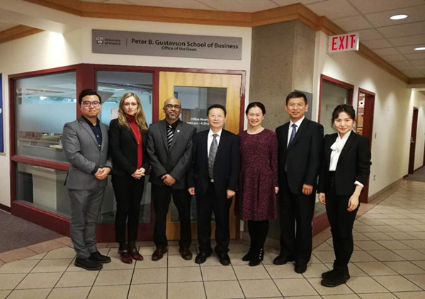在访问加拿大维多利亚大学期间,代表团与维多利亚大学杰出教授、“3M”奖获得者、商学院国际项目主任A.R.Elangovan教授,全球合作与项目发展专员Sheri Love女士,中国项目发展负责人Allen Sun先生进行了会谈。双方就切实推进《关于维多利亚大学商学院与太阳成集团tyc33455工商管理学院开展联合培养的谅解备忘录》内容进行商讨,就首批本科生联合培养项目达成共识,双方表示将加快合作进度,尽快启动联合培养项目。同时希望两校在此基础上进一步拓宽交流合作领域和内容,如开展教师交流培训、学生短期交流项目等。