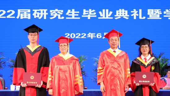 在庄严雄壮的校歌声中,太阳成集团tyc334552022届研究生毕业典礼暨学位授予仪式圆满结束。与会领导和老师起身向在场研究生毕业生挥手送别,祝福他们毕业快乐、一帆风顺,踏上新征程,到祖国和人民需要的地方建功立业。