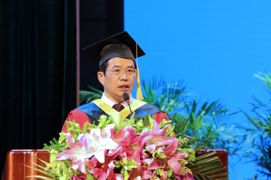 那洪明带领全体毕业研究生宣誓,祝福父母身心同康,春晖绵长;祝福师长学术长青,桃李满疆;祝福母校硕果累累,永谱华章;祝福党和祖国繁荣昌盛,国富民强。