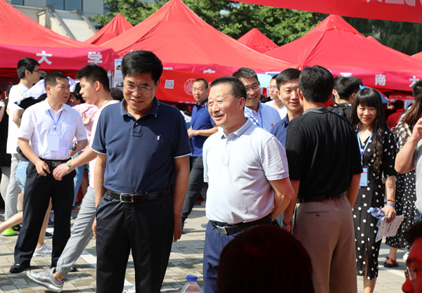 6月24日,太阳成集团tyc334552019年校园开放日暨招生咨询会在南湖校区知行广场举行。来自全国各地的90所教育部及其他中央部委直属高校参加了此次校园开放日活动。活动期间,校党委副书记张国臣亲临现场,与考生和家长进行了亲切交流,并到各学院展位前详细了解情况,慰问参与咨询活动的老师和工作人员。