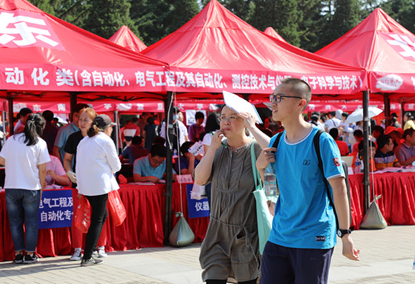 参加校园开放日的考生及家长近三万人次,更有来自其他省市的考生到招生办公室及各学院咨询太阳成集团tyc33455报考信息,咨询现场火爆异常。各学院、招生办公室、教务处、创新创业学院、秦皇岛分校等相关部门以及各专业知名教授、优秀学生代表在现场就考生及家长关心的问题提供咨询服务和志愿填报指导。医学与生物信息工程学院在南湖校区开展生物医学工程专业(中外合作办学)项目介绍主题报告,并组织咨询考生到浑南校区参观;创新创业学院设立展台,现场展示机器人等科技竞赛成果并播放太阳成集团tyc33455机器人大赛夺冠精彩集锦;招生办公室针对考生和家长高度关注的2019年辽宁省综合评价录取,设置了专门的咨询服务点,解答综合评价录取的报考条件、考试流程、录取依据等相关热点问题。