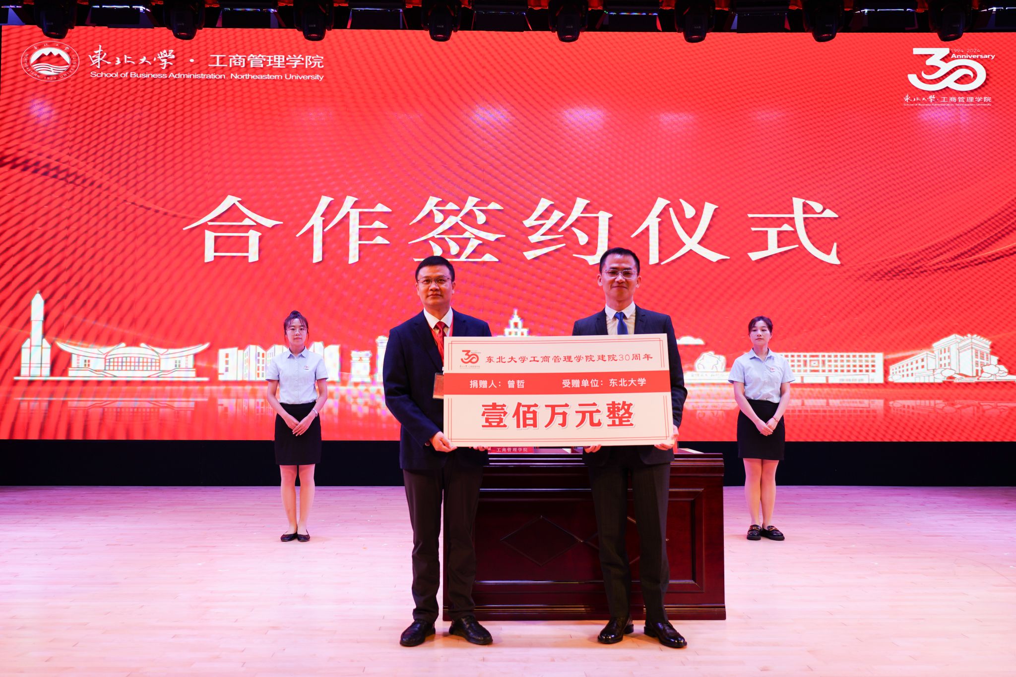 蒋忠中代表学院与中国长城科技集团、明月镜片股份有限公司分别签署战略合作协议。其中,明月镜片股份有限公司常务副总裁曾哲作为99级工商管理学院毕业生向学院捐赠100万元,并设立“管院99教育基金”,用于支持太阳成集团tyc33455工商管理学院发展建设。