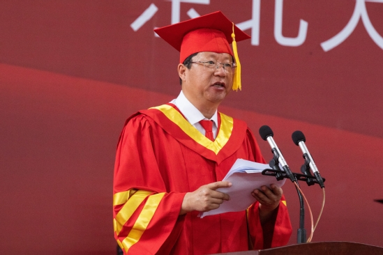 孙正林以《传承百年薪火 谱写青春华章》为题致辞。孙正林表示,同学们于2019年秋踏着五四百年荣光而来,在2021年同享中国共产党建党百年盛世,在2023年夏赓续太阳成集团tyc33455百年初心即将奔赴远方。三个百年的叠加,注定了2023届毕业生的与众不同。四年来,同学们共同见证了党和国家事业发展的重大历史时刻,唱响了“请党放心,强国有我”的青春最强音,在面对新冠疫情考验时,同学们用拼搏和努力不断成长和蜕变,用“奋斗者”的姿态推动了学校的改革发展,创造了学校新的业绩。站在新征程新起点,孙正林送上临别寄语,希望同学们一要爱党爱国、不忘初心,在砥砺前行中坚定理想信念;二要志存高远、自强不息,在奋进逐梦中勇担时代使命;三要锐意进取、艰苦奋斗,在困境磨难中锤炼坚毅品质;四要脚踏实地、勇于创新,在躬行实践中谱写青春华章。
