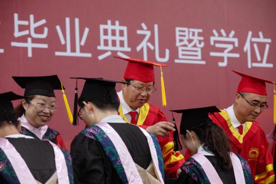 秦皇岛分校领导班子成员、学位评定委员会成员、学术委员会成员和各学院院长为毕业生扶正流苏,授予学位。