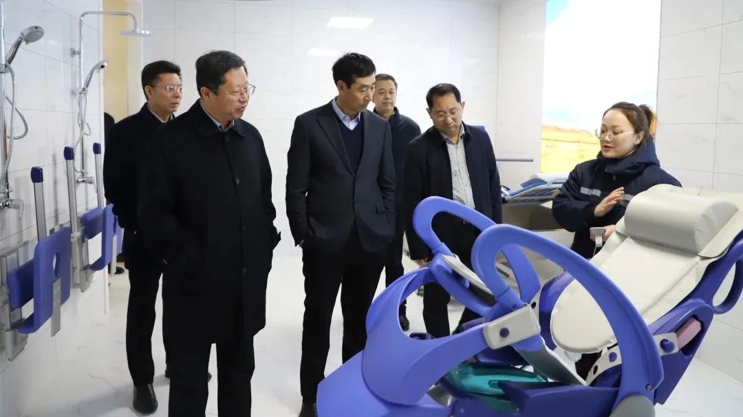 孙正林一行先后参观了中秦兴龙企业文化展厅、中秦兴龙康复辅具产业园、康辉医疗与中秦兴龙联合展厅,考察了相关医疗器械和辅具设备、设施情况,对中秦兴龙的产业发展以及中秦兴龙康养业务开展情况进行了深入了解。