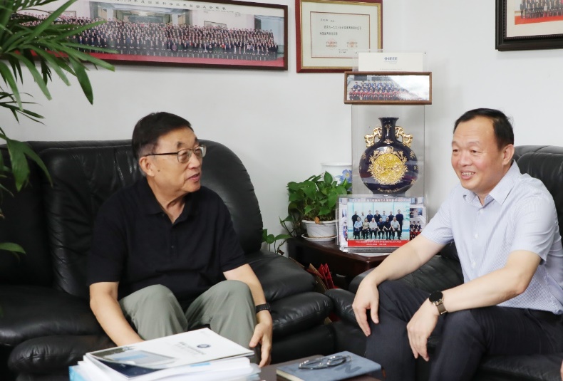 在流程工业综合自动化国家重点实验室,柴天佑院士介绍了实验室的主要科研方向和研究成果。柴天佑表示,实验室已经形成了“基础研究—技术攻关—应用验证”的全链条创新团队,共同为企业解决工业流程控制与决策难题,为中国企业的智能化发展贡献力量。实验室还创办了研究生创新实验班,培养引领未来技术发展的创新型工程科技人才。郭海感谢柴天佑院士为我国自动控制领域培养了大批优秀科研人才,希望柴天佑院士认真总结培养优秀研究生的实践经验,不断增强人才自主培养能力,为服务国家科技自立自强作出更大贡献。