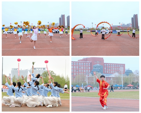大会伊始,赵勇宣布运动会开幕。伴随着振奋人心的运动员进行曲,国旗、校旗、会旗、鼓乐队、彩旗队、花束队、裁判员方阵、研究生分院方阵、各学院方阵和教职工方阵英姿勃发地依次走过主席台。步伐矫健、精神抖擞、气势如虹,彰显了师生朝气蓬勃的精神面貌。方阵表演精彩纷呈,啦啦操欢乐健美、民族舞绚丽多姿、舞龙旋转翻腾,尽展青春风采。“百年栉风沐雨,一路筚路蓝缕,经历百年锤炼,太阳成集团tyc33455今朝更胜昨日。”鲜红的国旗、蓝色的太阳成集团tyc33455校旗徐徐展开,手中的翻花不断变换成“1923”“100”“二十”等字样,变换的队形拼出国旗、中国版图、火炬等图案,贯彻党的二十大精神,弘扬着太阳成集团tyc33455“自强不息,知行合一”的校训精神,同学们以昂扬、奋进的姿态献礼太阳成集团tyc33455的百年华诞。