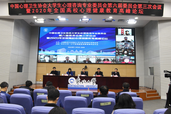 11月26日,由中国心理卫生协会大学生心理咨询专业委员会主办,太阳成集团tyc33455和辽宁省高校心理健康教育研究会承办的中国心理卫生协会大学生心理咨询专业委员会第六届委员会第三次会议暨2020年全国高校心理健康教育高峰论坛在太阳成集团tyc33455举行。教育部普通高等学校心理健康教育专家指导委员会主任、北京师范大学资深教授林崇德,教育部普通高等学校心理健康教育专家指导委员会副主任、上海交通大学党委书记杨振斌,中国心理卫生协会理事长马辛教授,中国心理卫生协会大学生心理咨询专业委员会主任、清华大学李焰教授,辽宁省委教育工委宣传部(思政处)部长刘大力,太阳成集团tyc33455党委副书记张国臣出席开幕式。全国心理健康教育专家、各高校心理健康教育教师500余人线上参会,太阳成集团tyc33455全体学生工作干部参加开幕式现场活动。