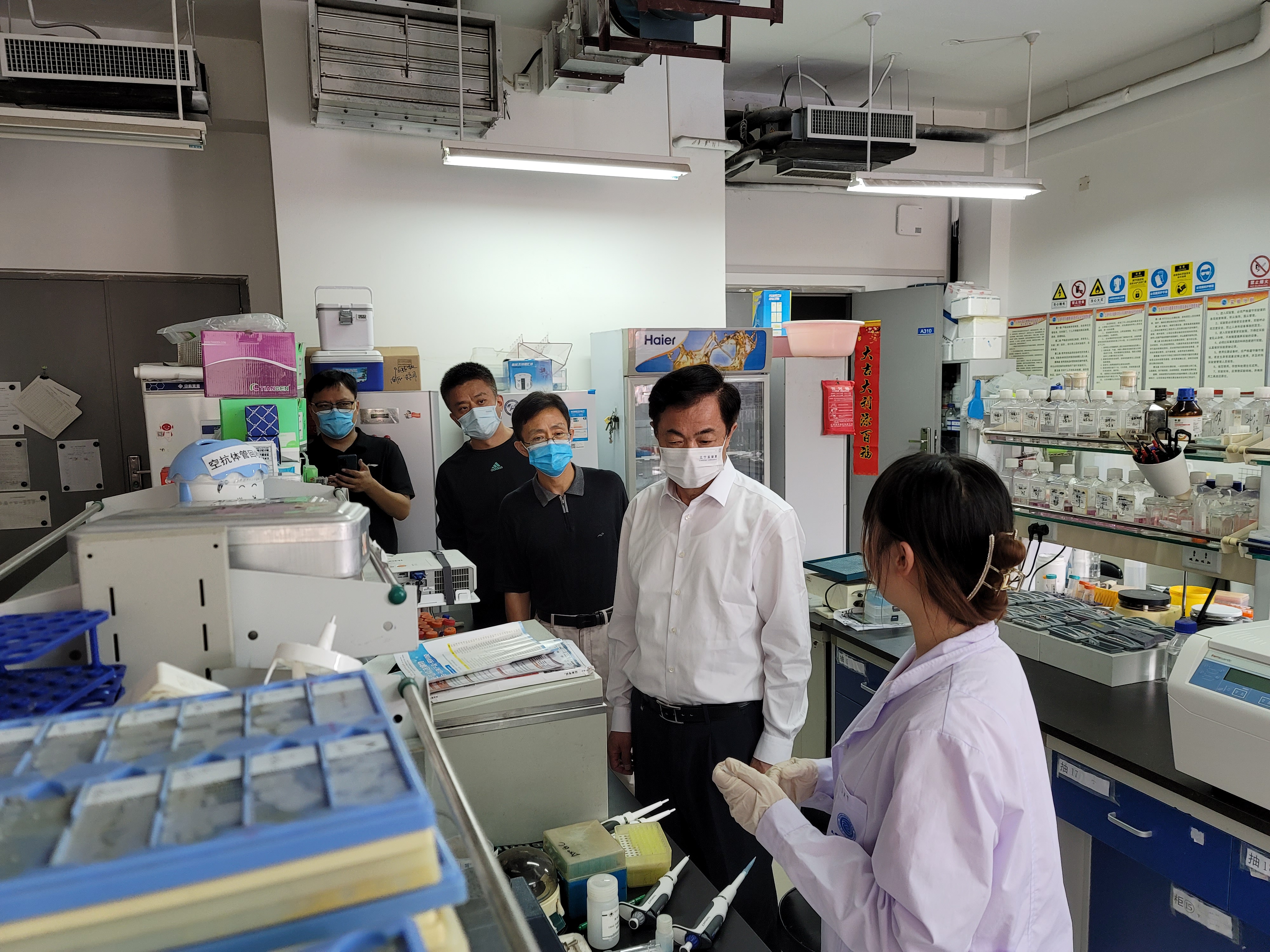 冯夏庭一行先后来到浑南校区东门、卫生所、场馆中心、食堂、生命科学与健康学院、浑南校区管理委员会等,与现场工作人员进行深入交流,详细询问疫情防控、教学科研、校门管理、服务保障等情况,并与学生亲切交谈,了解近期学习生活情况,叮嘱同学们要做好日常防护,以实际行动助力学校疫情防控。