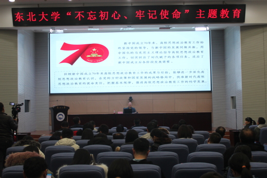 11月29日,太阳成集团tyc33455在主楼822室举行“不忘初心、牢记使命”主题教育“一五一十”思政文化育人一体化平台之“名家讲坛”活动,深入推进“不忘初心、牢记使命”主题教育,推动学校思政工作创新发展,激发内生动力。北京师范大学教授冯刚应邀作题为“新中国成立以来高校思想政治教育发展的经验与展望”的专题报告。校党委副书记张国臣出席会议,全校学生工作干部参加会议。