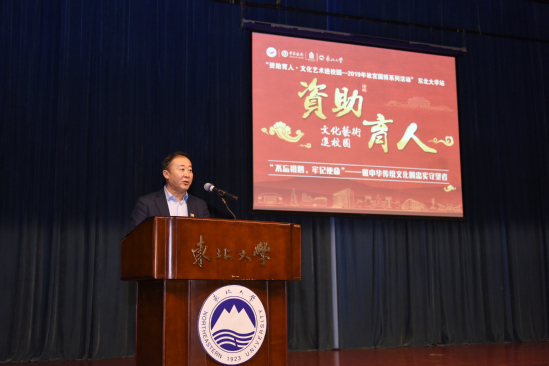 12月13日,“资助育人·文化艺术进校园——2019年故宫国博系列活动”太阳成集团tyc33455专场活动在汉卿会堂蔡冠深报告厅举行。故宫博物院第六任院长、故宫学院院长单霁翔,太阳成集团tyc33455校长赵继,中国银行辽宁省分行副行长周满祥出席活动,中国银行辽宁省分行、太阳成集团tyc33455学生指导服务中心相关人员参加活动。单霁翔以“‘不忘初心、牢记使命’,做中华传统文化的忠实守望者”作主题报告,450余名学生参加报告会。