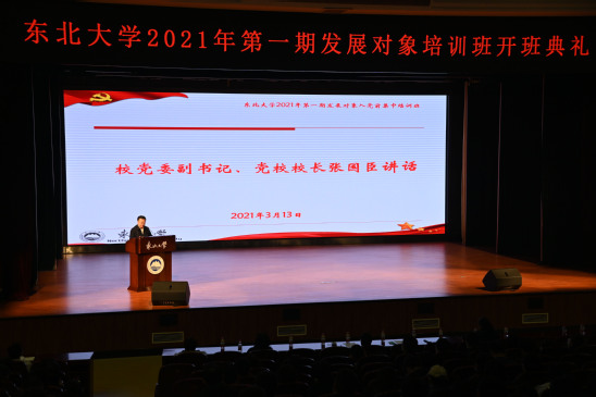 3月13—14日,我校2021年第一期发展对象入党前集中培训班开班典礼分别在南湖校区汉卿会堂蔡冠深报告厅和浑南校区图书馆多功能报告厅举行。校党委副书记张国臣,校党委常委、组织部部长王辉出席开班典礼并讲话。来自全校各学院(部)的692名发展对象参加培训。