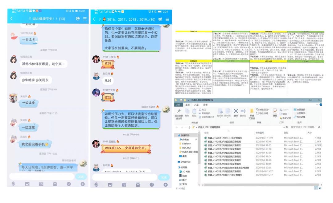 “隔离隔不住关爱,疫情挡不住温情”。学院第一时间成立“湖北学生交流群”、“本科生通知群”、“硕士生通知群”、“博士生通知群”,日报平安成常态。辅导员、学生干部赋予每一件大事小情以关爱,防控以来,始终坚持“两个约定”,每天上午10:00网络会议是“白日之约”,每天晚上8:00的线上交流是“星光夜话”。线上交流搭起师生之间的一根热线,送去的是体温监测、通风消毒、学习阅读的提示,传达的是暖暖的信息温情。此外,为更迅速实施系列维护师生安全健康、保证稳定有序的措施,在日报的基础上,学院形成“抗击新型冠状病毒疫情日记”,记录成长与温情,总结经验,攻坚克难。