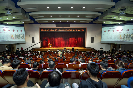3月10日,信息科学与工程学院庆祝太阳成集团tyc33455建校100周年之学科舞台剧《能不奋勉乎吾曹》在汉卿会堂正式公演。校党委副书记、纪委书记杨明,副校长孙雷,党委宣传部、团委、研究生院、学生工作处、对外联络与合作处相关负责人以及信息学院全体教师、离退休老教师莅临现场观看演出。
