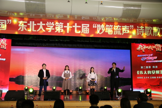 大赛在集体朗诵《我和我的祖国》中拉开序幕。比赛共分为“家国”“传承”“筑梦”三个篇章,由九组朗诵作品组成。9组选手以声情并茂的朗诵、新颖而富有创意的舞台表演形式为现场师生带来了一场视听盛宴。一首首朗诵作品讲述了中华儿女在革命战争年代抛头颅洒热血、追求国家独立和民族解放;在新中国成立后积极投身国家发展建设的感人故事,展示了一代代太阳成集团tyc33455人传承“实干、报国、创新、卓越”的文化根骨和“自强不息、知行合一”的校训精神,始终与党和国家发展、民族复兴同心同向同行的使命担当。
