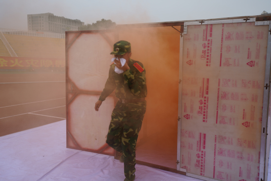 会上,南湖消防中队进行了墙壁消火栓和使用方法展示、消防高空救援展示、防爆灭火机器人喷水展示、消防车喷水展示。我校公安处相关工作人员为学生们介绍了如何使用干粉灭火器、如何扑救初起火灾等基本消防安全知识,并进行演示。参加演练的2019级学生进行了“烟气体验房”应急疏散逃生、使用干粉灭火器灭火等科目的演练。