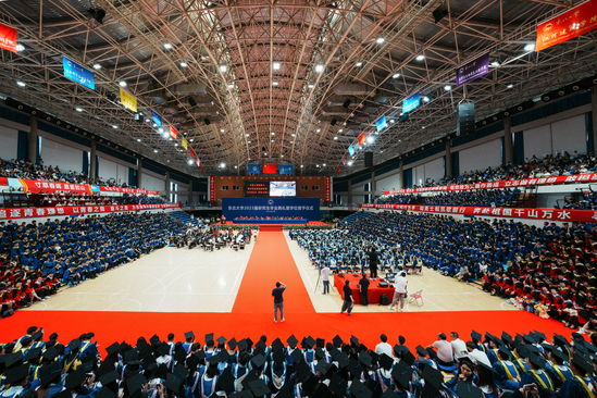刘圆超带领全体毕业研究生宣誓,祝福父母身心同康,春晖绵长;祝福师长学术长青,桃李满疆;祝福母校硕果累累,永谱华章;祝福党和祖国繁荣昌盛,国富民强。