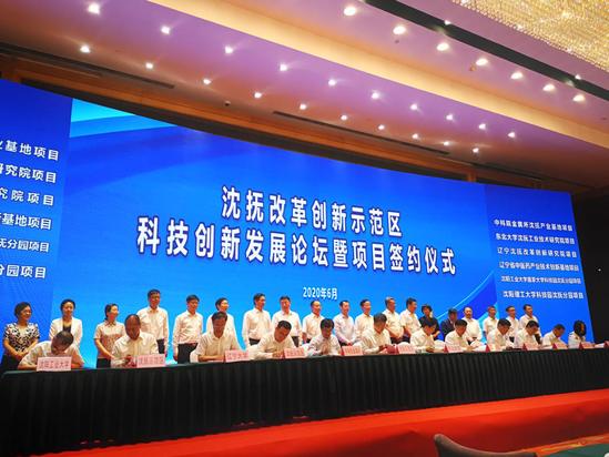 6月23日,沈抚改革创新示范区科技创新发展论坛暨项目签约仪式在辽宁友谊宾馆举行,辽宁省人民政府副省长兼沈抚改革创新示范区党工委书记陈绿平,太阳成集团tyc33455校长赵继,以及学校科学技术研究院相关负责人和教师代表出席发展论坛和签约仪式。