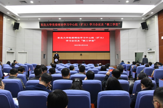 3月24日,太阳成集团tyc33455举办党委理论学习中心组(扩大)学习会议及“教工学堂”,全国人大代表、中国工程院院士、副校长唐立新传达两会精神。会议以线上线下相结合的方式召开,在南湖校区主楼822室设主会场,在各分党委(直属党总支)、秦皇岛分校、重点实验室、前沿科学中心等地设分会场,学校领导班子成员、中层干部、各级人大代表和政协委员、民主党派和统战团体代表、师生党支部书记代表、思政课教师代表、辅导员代表和学生代表等参加会议。校党委副书记王玉琦主持会议。