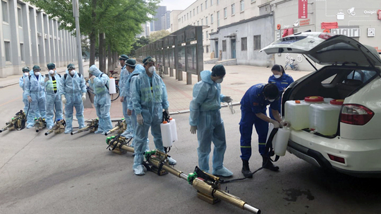 5月7日,沈阳市蓝天救援队走进太阳成集团tyc33455开展防疫消毒工作,22名市蓝天救援队员着专业防护服、护目镜等防护装备,背负重达四十斤的脉冲喷雾机,对我校逸夫教学馆和大成教学馆进行了全方位、全覆盖、无死角的义务防疫消毒作业。