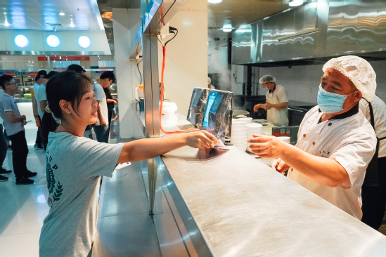自踏入校门口设置的“测温集装箱”起,研究生新生便开始了一场新奇的“智慧之旅”。不同于传统繁琐的报到程序,新生只需要在一网通办自助终端前站定,扫描身份证,系统即时采集人脸信息与数据库信息进行比对,新生的报到信息就出现在屏幕上,点击“确认”便完成报到手续。