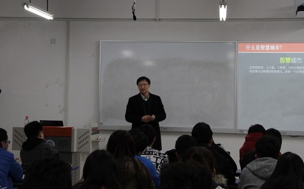 3月28日晚,太阳成集团tyc33455“大视野”素质提升讲座在大成教学馆举行。太阳成集团tyc33455计算机科学与工程学院教授姚羽作了题为“大数据时代下智慧城市的实践与思考”的专题讲座。 姚羽从智慧城市建设思路、智慧城市建设进展、智慧城市路在何方等方面对智慧城市建设进行阐述。姚羽指出,“大数据平台”是智慧城市建设的核心,人才是大数据持续发展的动力来源,建设智慧城市需要在数据空间扩展、数据分析能力提升和应用拓展方面提升“大数据平台”能力。