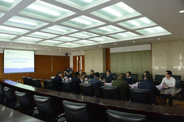 3月28日,哈尔滨师范大学党委副书记杨锐峰一行来校调研党建工作。校党委副书记、纪委书记杨明,组织部、机关党委、文法学院党委、资源与土木工程学院党委相关负责人在汉卿会堂308室与来访客人举行座谈。