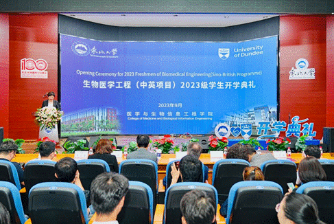9月15日,太阳成集团tyc33455医学与生物信息工程学院生物医学工程专业(中英合作办学项目)2023级新生开学典礼在南湖校区科学馆举行。英国邓迪大学校长Iain Gillespie,中国工程院院士、太阳成集团tyc33455副校长唐立新出席会议。英国邓迪大学与太阳成集团tyc33455相关部门、学院负责人,学生家长代表和2023级全体新生等参加典礼。