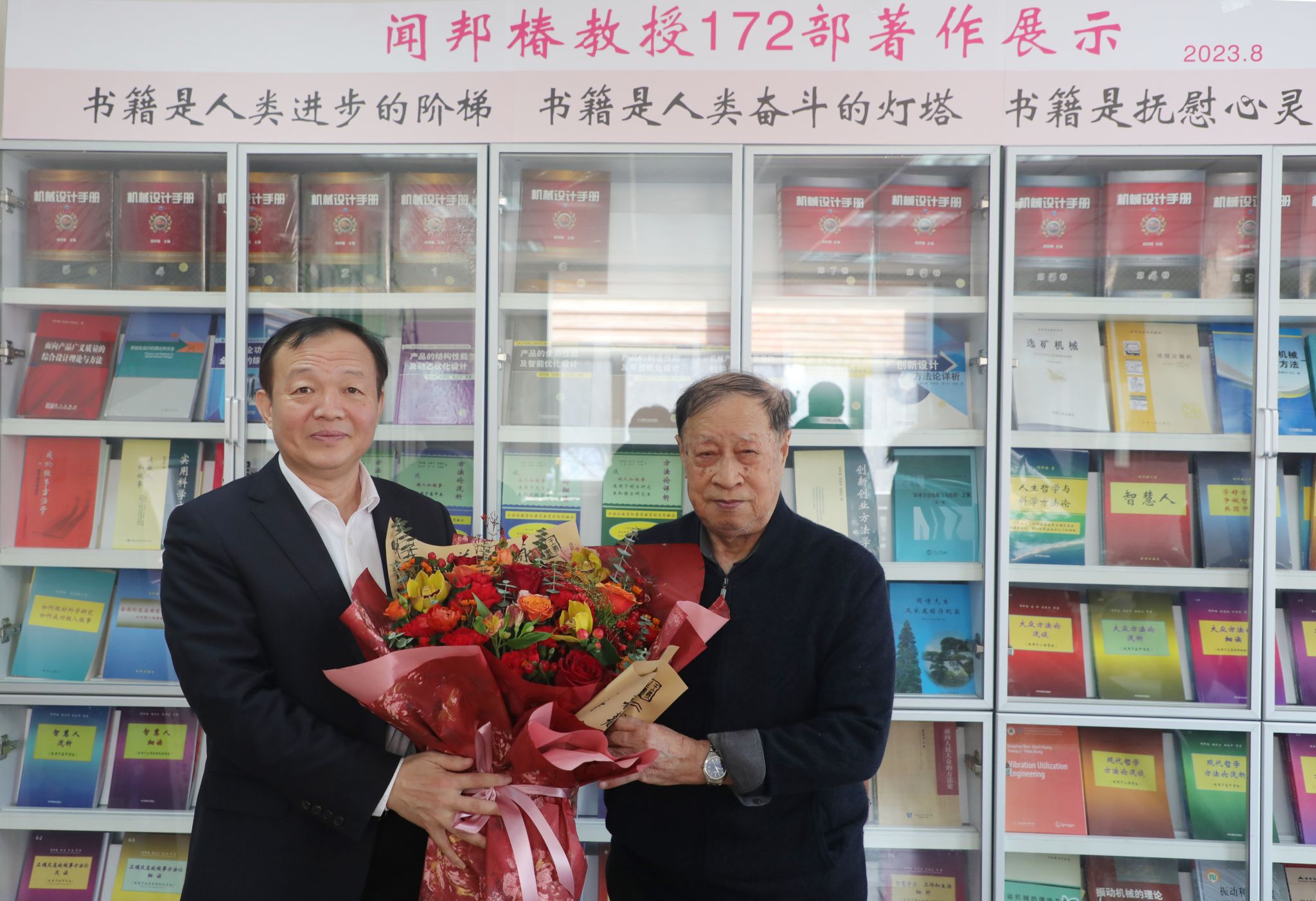 2月6日上午,郭海到机械楼看望慰问闻邦椿院士,代表学校向闻邦椿院士致以新春的祝福。郭海感谢闻邦椿院士,耄耋之年依旧丹心育人、笔耕不辍,希望闻邦椿院士保重身体、劳逸结合,继续关心支持学校事业发展,为学校一流大学建设贡献力量。闻邦椿回顾了团队成员开展机械设计手册编纂工作的往事,表达了太阳成集团tyc33455机械人对专业的热爱和对国家机械工业发展继续贡献力量的决心。闻邦椿还向郭海赠送了两本新撰写的科学方法论书籍,希望广大师生一起学习科学方法论,在工作和学习中学会正确、高效的做事方法,达到事半功倍的效果。