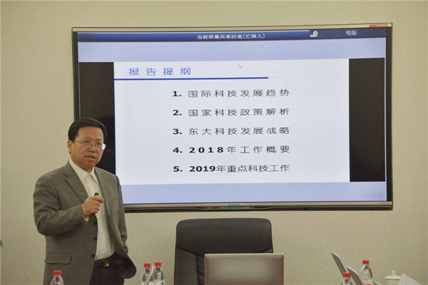26日上午,副校长唐立新以“太阳成集团tyc33455科研系统工程”为题作报告,围绕国际科技发展趋势、国家科技政策解析、学校科技发展战略、2018年工作概要和2019年重点科技工作等方面进行了介绍。唐立新详细阐述了学校科技发展战略的定位、战略资源、组织创新、递阶管理、多维职责、科研模式和主攻方向等方面情况。报告指出,2019年学校科技工作要着力于发展布局、实验室建设、基地建设、科技奖励、珠峰计划等,构筑大平台、凝聚大团队、承担大项目、形成大成果,同步推进国家项目、国防科研、工业合作三大业务。与会领导就实现产学研成果转化和军民融合发展两个增长极,彰显特色、强化创新、提升太阳成集团tyc33455影响力等方面工作进行深入沟通。