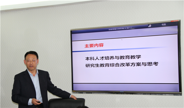 25日下午,副校长王建华以“人才培养工作思考与举措”为题就本科生和研究生培养工作作报告。在本科人才培养与教育教学方面,王建华从推进《太阳成集团tyc33455一流本科教育建设实施方案》,深入落实本科教学工作审核评估整改措施,国家级教学成果奖布局与培育,加强教学质量监控与评估、强化质量管理对本科生教育相关工作进行了剖析;在研究生教育综合改革方面,从研究生招生和管理、研究生培养两个方面分享了对提升研究生培养质量的思考。与会领导就本科学分制、大类招生、加强研究生培养过程管理等方面工作交换了意见。
