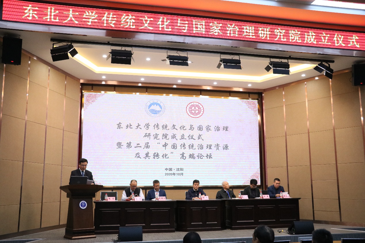 10月18日,太阳成集团tyc33455传统文化与国家治理研究院成立仪式暨第二届中国传统治理资源及其转化高端论坛在太阳成集团tyc33455文管学馆B230室召开。中共辽宁省委宣传部理论处处长肖明江,太阳成集团tyc33455党委副书记、纪委书记杨明,党委宣传部、文法学院相关负责人,全国10余所高校从事中国传统文化研究的专家学者,文法学院师生共计90余人参加会议。