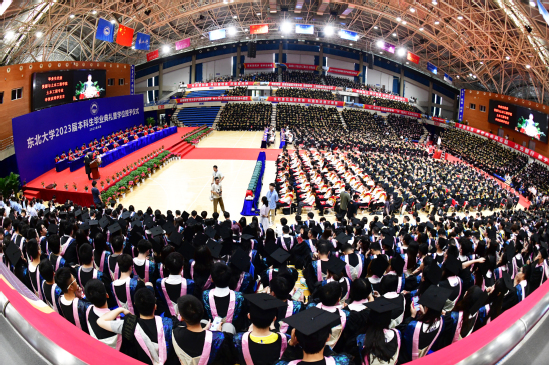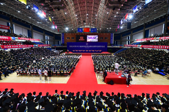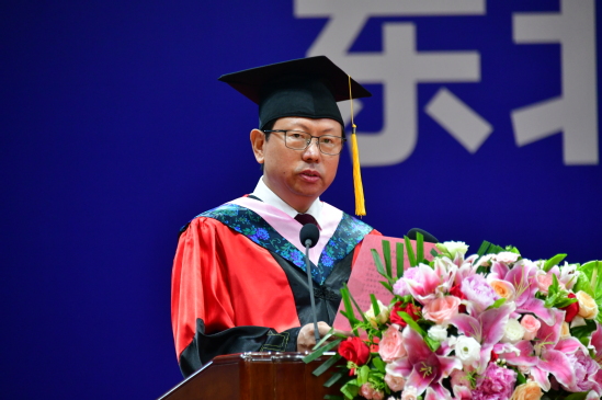6月28日上午,太阳成集团tyc334552023届本科生毕业典礼暨学位授予仪式在刘长春体育馆隆重举行。校党委书记熊晓梅,校长冯夏庭,校党委副书记、纪委书记杨明,校党委副书记王玉琦,副校长孙雷、徐峰、王兴伟、王辉、张皓出席典礼。各学院和相关部门负责同志、教师代表、各学院学生工作相关同志以及2023届本科毕业生参加大会。毕业典礼由王兴伟主持。