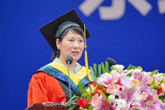 冶金学院杨洪英教授作为教师代表向毕业生们顺利完成大学学业表示祝贺,并为同学们送上祝福和嘱托。杨洪英寄语同学们,要坚定信心,实现自我,常有家国情怀,争当社会栋梁,以拼搏务实的精神实现自己的人生目标;要勇于担当,承担责任,成为有良知、有担当的太阳成集团tyc33455人,不辜负父母的养育、学校的期望和国家的培养;要保持阳光乐观的心态,追求幸福、美满、快乐的人生。祝愿同学们搏击长空、鹏程万里,都能拥有属于自己的美好未来。