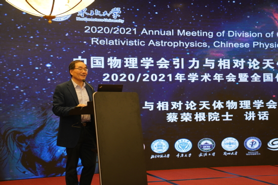 蔡荣根院士在讲话中表示,当今世界正经历百年未有之大变局,全球科技创新进入空前密集活跃的时期,新一轮科技革命和产业变革正在重构全球创新版图,在这样的历史时期,我国正在比以往任何时期都更加注重对基础研究的投入,以及对科技领军人才的培养。近四年的诺贝尔物理学奖有三次颁发给了引力与天体物理领域,这充分说明了我们领域的研究正在迎来发展的黄金时期。随着我国的FAST望远镜(“中国天眼”)等一批重大科学装置的建成,未来我国一定会迎来引力与天体物理相关重大成果的井喷之势。蔡荣根表示,我国已牢固确立人才引领发展的战略地位,中国物理学会引力分会应尽力为青年人才营造良好的创新环境,加快形成有利于人才成长和脱颖而出的培养和竞争机制,培养造就一大批具有国际水平的科技领军人才、青年科技人才和创新团队。