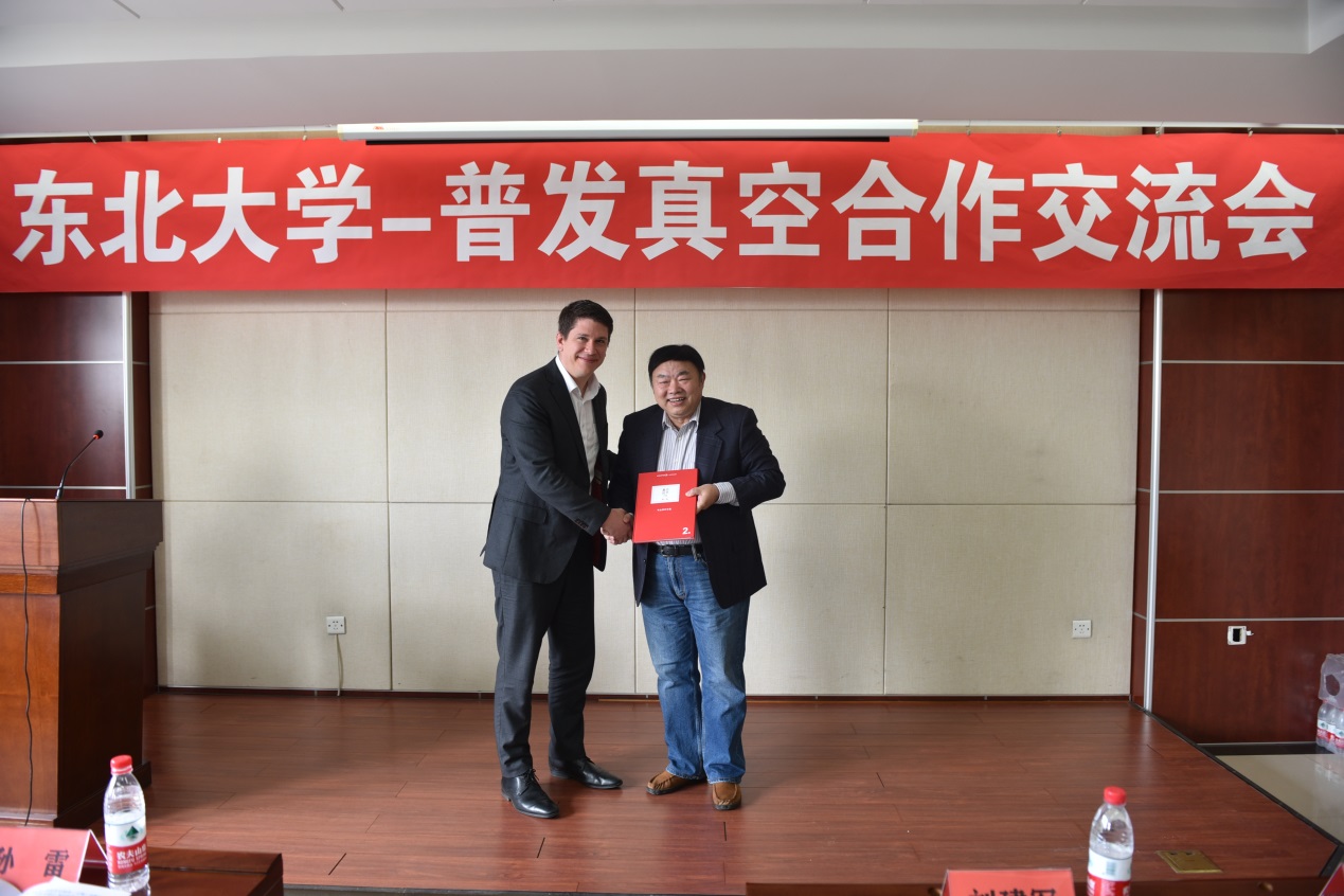 巴德纯教授代表机械学院真空与过程装备系师生,接受普发真空专业书籍的捐赠。