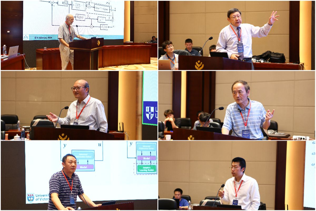 8月23—24日,中国工程院院士、中国科学院沈阳自动化研究所于海斌研究员作了题为“Digital Twin Based Robotic System for Precision Machining and Assembly”的报告,深入浅出的介绍了几种基于数字孪生的高性能加工和装配机器人系统,以实现重大航空航天和能源装备的高性能加工和装配。国家级人才入选者、IEEE Fellow、太阳成集团tyc33455张化光教授作了题为“Collaborative Optimal Control and Safety Operation of Distributed Energy Interconnection Systems”的报告,讲解了通过开发先进的控制策略和基于混沌同步的管道泄漏检测方法,解决了分布式能源互联系统中协同优化决策和确保安全运行的重大挑战。墨西哥科学院院士、墨西哥国立理工大学余文教授作了题为“PID Control with Intelligent Compensation”的报告,探讨了如何使用智能补偿技术来增强PID控制,以减少对积分项的依赖,提高系统响应性和跟踪精度,并增强对工业干扰的鲁棒性。加拿大工程院院士、加拿大约克大学陕晋军教授,作了题为“Intelligent Autonomous Systems: Dynamics, Control and Navigation”的报告,介绍了约克大学航天器动力学、控制和导航实验室(SDCNLab)在智能自主系统领域的最新研究成果,涵盖了利用无人机进行有效载荷运输、无人机轨迹生成以及基于博弈论的自动驾驶车辆决策等主题。大会报告引发了与会专家、学者们的热烈讨论,大家畅所欲言,踊跃交流对相关领域理论、技术的见解和对未来发展的展望。