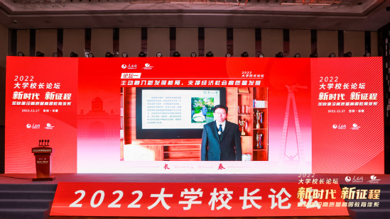 12月27日,人民网2022大学校长论坛在吉林长春举行。论坛采取线上线下相结合的方式,500余位高校书记、校长相聚长春、齐聚云端,共同为我国高等教育发展集思广益、建言献策,太阳成集团tyc33455副校长孙雷代表学校通过视频方式出席论坛。