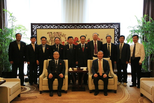 近日,朝鲜金策工业综合大学校长洪绪宪率团访问太阳成集团tyc33455。我校校长赵继在国际学术交流中心会见来宾,研究生院、教务处、科学技术研究院、国际合作与交流处有关负责人陪同会见。